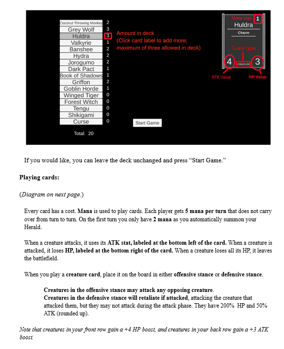 For this project, I was the main game designer as this was a game idea I came up with for a group project. I was responsible for designing the base rules of the games and I also designed most of the cards for the game.